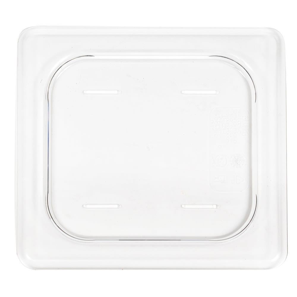 επίπεδο καπάκι Cambro Camwear® (GN 1/6) από ανθεκτικό, διαφανές πολυκαρβονικό. Σχεδιασμένο για μείωση επιμολύνσεων και διατήρηση φρεσκάδας, κατάλληλο για πλυντήριο, NSF.